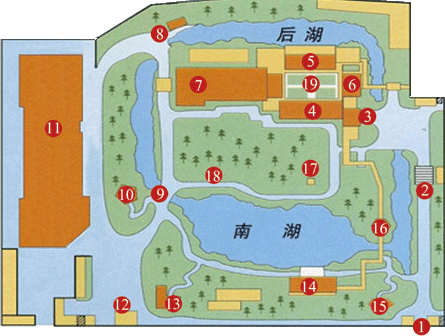 宋庆龄自1963年4月迁居于此,一直工作、学习和生活到1981年5月29日逝世,共在这里度过了18个春秋。1982年5月29日,故居正式对外开放。一座仿古式两层主楼,园内碧水回环,山石嶙峋,花木荟萃,芳草萋萋,楼堂亭榭,错落其间,浑为一体,是一处娴静典雅的庭园。古建筑群以西的一中西合璧两层楼的主体建筑是宋庆龄的寓所(后建),兼办公、会客,称主楼,内有原状陈列。建筑群与南湖之间为草坪,草坪上设有旗杆,悬挂2号国旗。南湖南岸有明代两层楼建筑称南楼。南山东侧有箑亭;西侧有听雨屋。园内有重点保护古树23株,其中西府海棠名列北京“最美十大树王”。有长廊迂回曲折,纵贯南北,连接南楼与北建筑群,长廊中有恩波亭(纳兰时期渌水亭原址)。庭院明清两代古建为砖木结构,楼台亭阁,王府风格,建筑面积2000余平方米。现代建筑为钢混结构,是在原有主体建筑迤西接建的灰色仿古二层小楼,为宋庆龄生前工作和生活之处,建筑面积2100余平方米。新文物库依西侧大墙而建,宋庆龄生平展在新建文物库一层,2009年竣工。