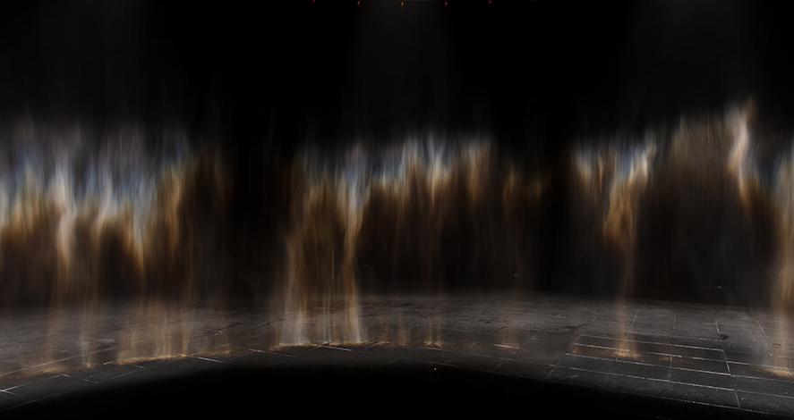 聚光灯、水、喷头、木、软管、泵。在黑暗的空间里,一圈聚光灯由内向外照射在一道环形雾障上,在环形内侧形成了微亮的彩虹。在轻柔的水幕上若隐若现的色彩并不存在于雾障之中,它们之所以能被看到,是因为光线被水滴折射和反射后以一个特定角度进入到观者眼中。因此,只有当有人走到环形附近,移动到一个可以看到色彩的地方,这件作品才称得上完成。埃利亚松的作品是依赖观者的参与的;艺术家频频使用反射和余像等在艺术品当中并不存在、但在被观看时会产生的现象。这件作品是埃利亚松最重要的早期作品之一——创作于1993年的《美》的一种演进。