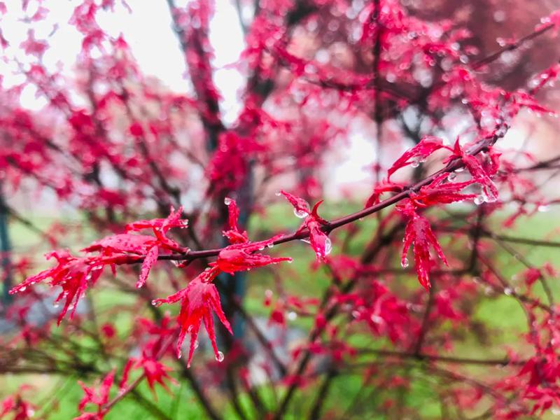 3月,红枫、红梅、樱花、玉兰、西洋鹃夺目缤纷;