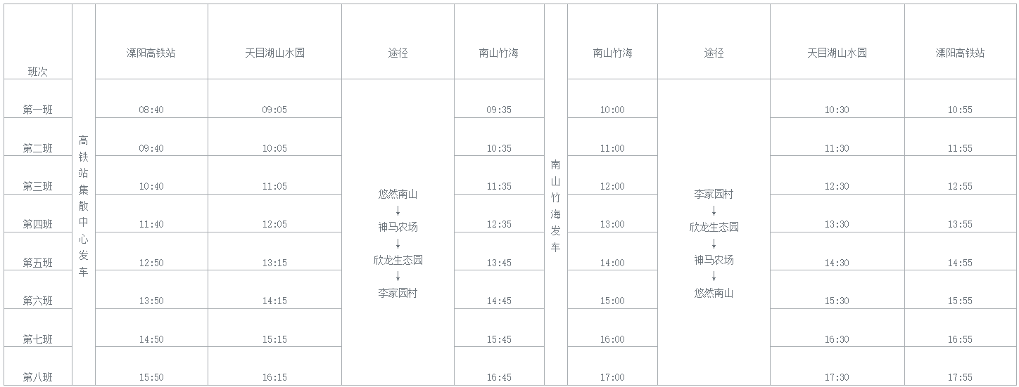 中途停靠站:天目湖山水园、悠然南山、神马农场、欣龙生态园、李家园村南山竹海