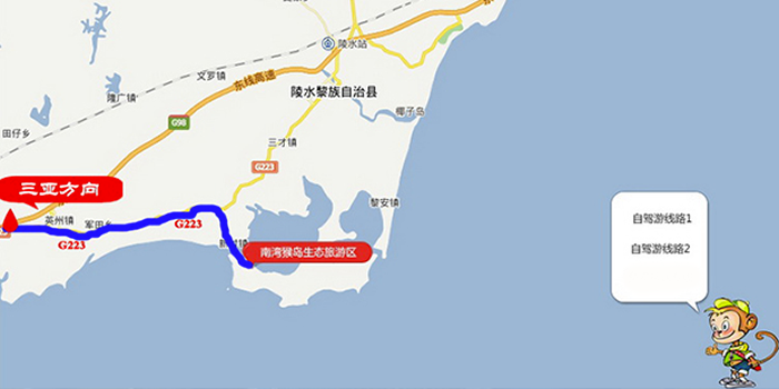 三亚通往南湾猴岛生态旅游区自驾线路图