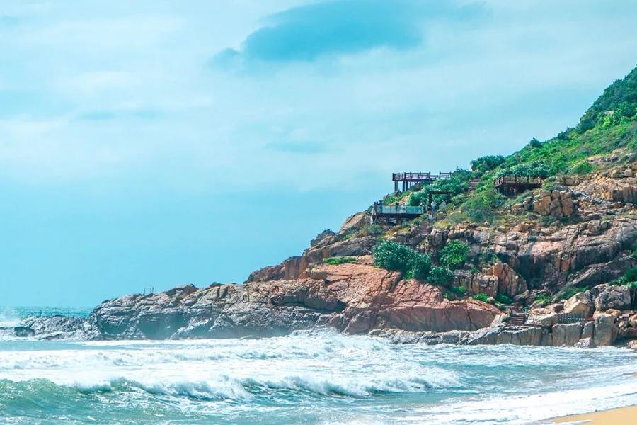 沙滩被一块巨大的名为“神鳌探海”的绝美礁石天然地分割为“南海湾”和“呆呆岛沙滩”两大区块。