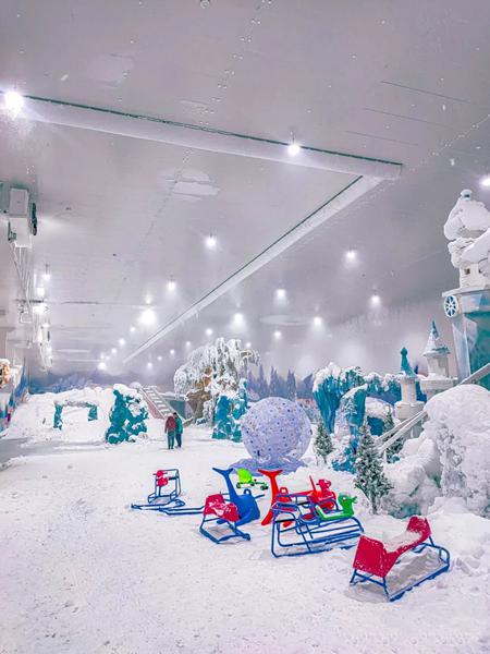 启迪鸿星梧州雪立方冰雪世界是四季全天候室内滑雪,滑雪区约200米长的滑雪道,宽40米滑雪道,从滑雪道上飞驰而下,沉浸在冰雪运动的欢乐里。娱乐有雪地摩托、雪地转转、雪圈道、雪地挖掘机、冰雪城堡、冰滑梯等。