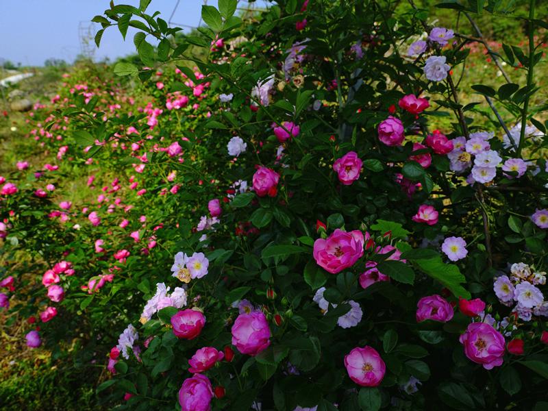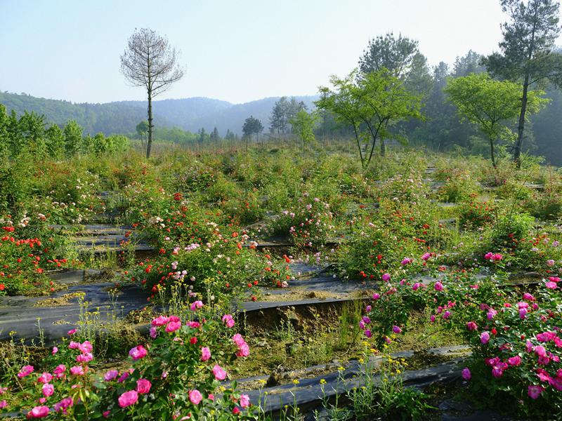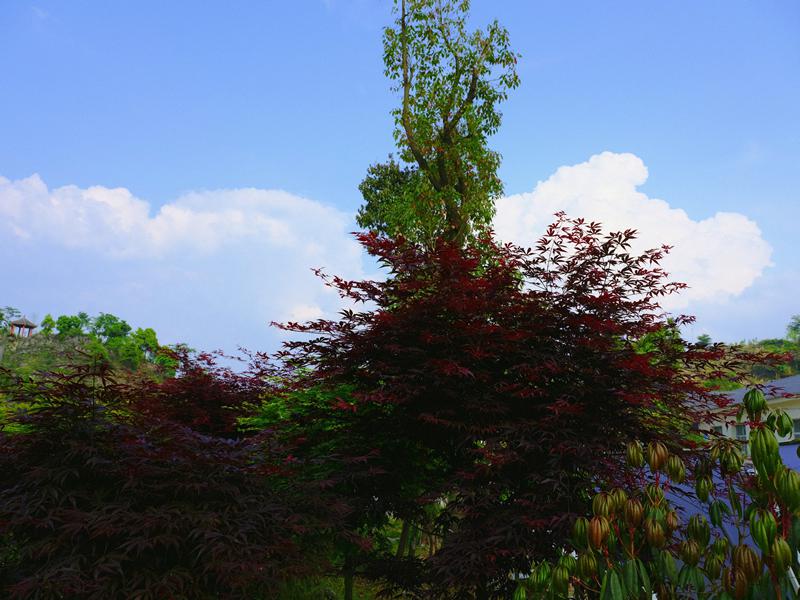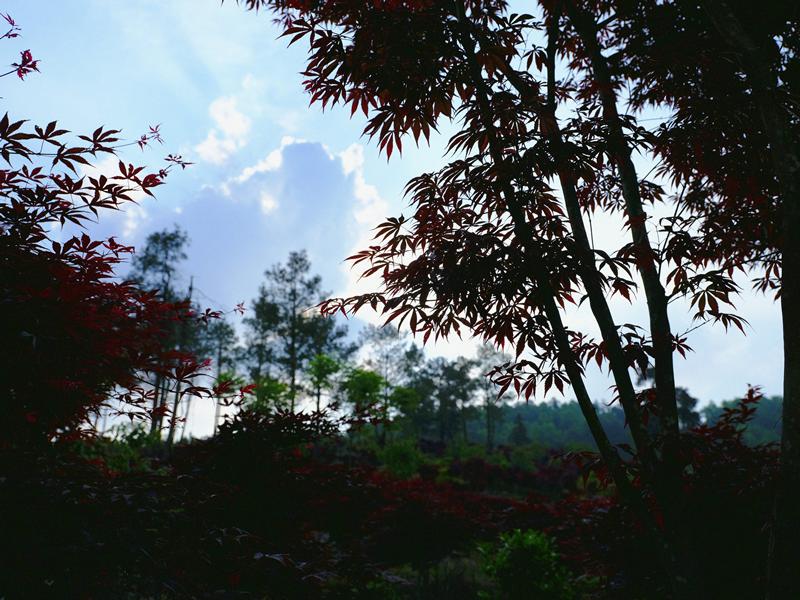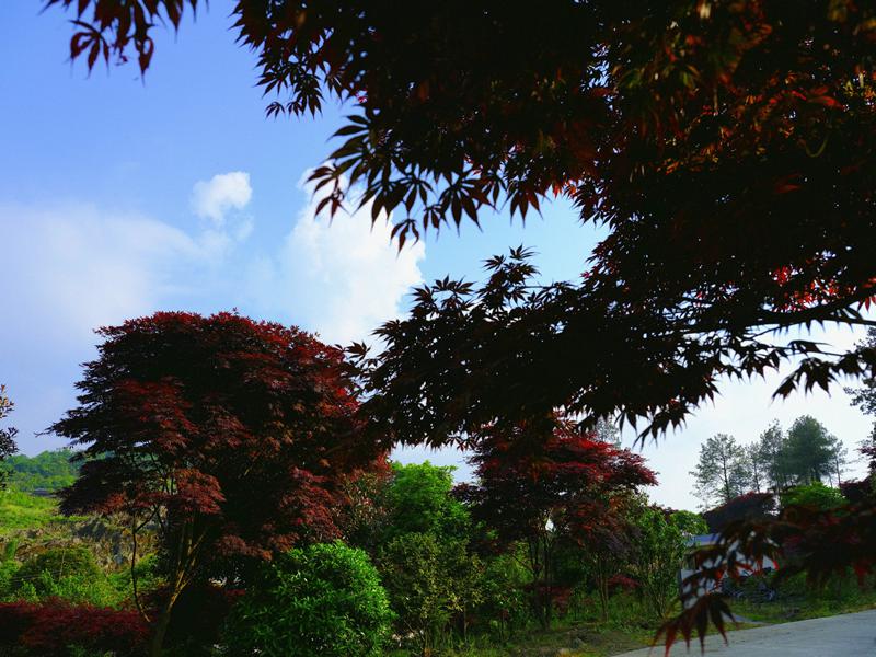 有红枫、月季、海棠、樱花、桃花、猕猴桃等,四季花开景色宜人。有嫩红的“亚洲红枫”、亮红的“三季红枫”、火红的“中国红枫”等品种,这里的红枫能够两季红、三季红,甚至全年保持红,漫山遍野燃烧着无尽的浪漫。