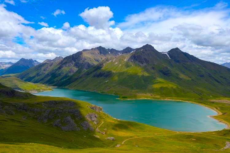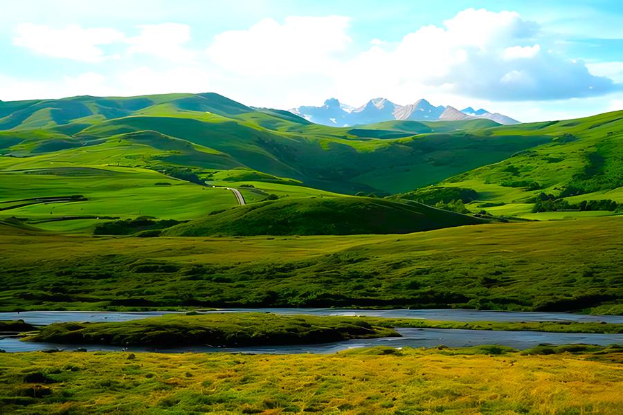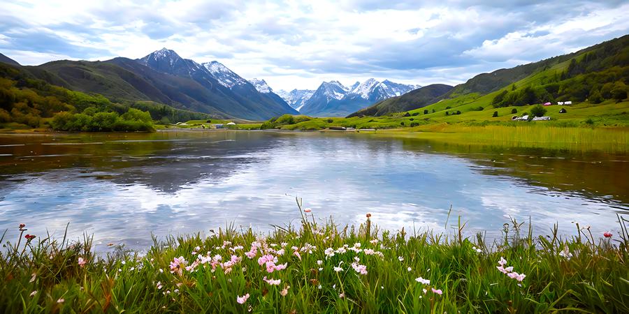 年保玉则山下有多个湖泊,夏季时还有开满鲜花的五色草地,雪山、湖泊、花海映衬的风景优美。山谷沟壑纵横,河流湖泊众多,均为高原淡水湖。仙女湖四周,层峦叠嶂,灌木丛生。主峰终年积雪,山川挺拔奇险,气势雄伟。