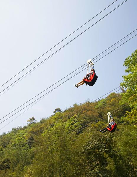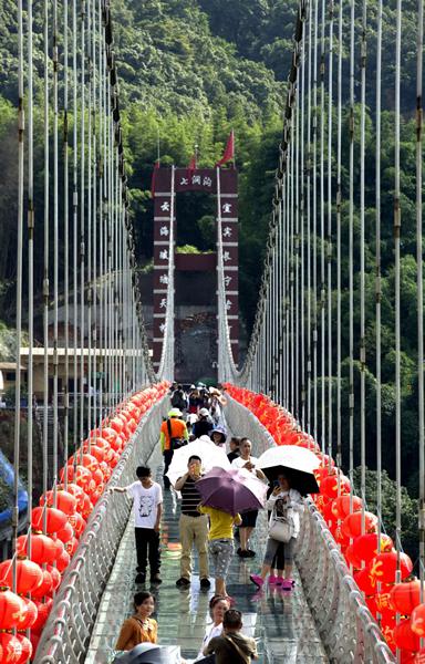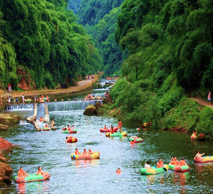 已近有2000年历史的七个洞崖墓群在绵溪河大峡谷几公里河道的两岸。还有东汉飞泉寺等。金丝楠物种基因库桢楠树群和活化石的桫椤树群。绵溪河大峡谷漂流上半段为急漂区,下半段为缓漂区。玻璃桥峡谷之上俯瞰绵溪河。