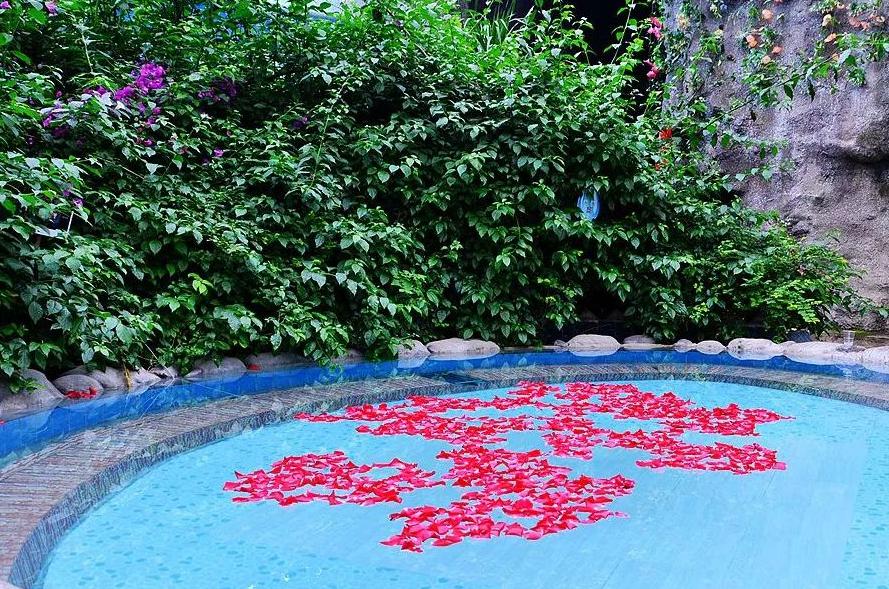 度假区、休闲、观光、养生、娱乐为一体,景区有两股温泉一股冷泉涌出,设有中药浴、玫瑰花瓣浴、精油浴、牛奶浴等。岩脚古镇古朴的建筑风格,踏石板老街、探深巷幽弄。溪水清澈,两岸怪石丛生,具有江南水乡的自然风光。