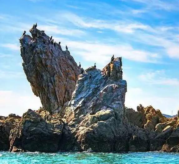 海王九岛,陆域面积约为7.24平方公里,海域面积600平方公里,海岸线长34.2公里。海水清澈、银滩闪烁,是游泳、日光浴和沙滩活动的理想场所。海王九岛以其独特的海蚀地貌而闻名,奇礁异石千姿百态,如双狮争雄、大象吸水、神龟探海等,形态逼真、惟妙惟肖,在国内沿海均属罕见。海王九岛也是海鸥、海鸭和白鹭等珍奇鸟类集中繁殖栖息的地方,被誉为“鸟岛”。