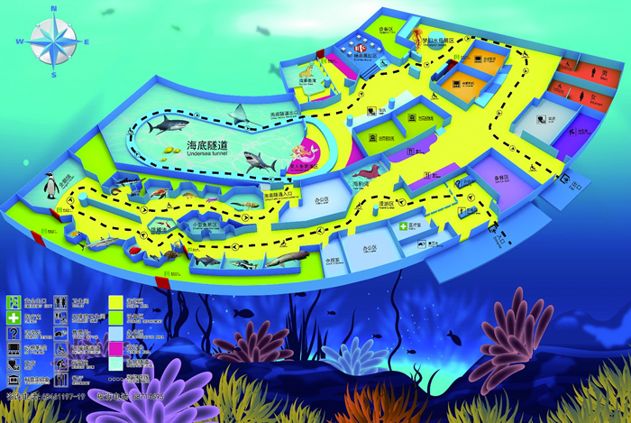海底隧道是太平洋海底世界的一大亮点,它采用90度至360度封闭环形亚克力玻璃隧道设计。游客站在自动步道上,可以欣赏到水下世界的迷人景观,仿佛置身于海洋深处。海洋动物表演区和风情表演区,精彩纷呈的表演是太平洋海底世界的特色,海洋动物表演;人鲨共舞表演;美人鱼表演和潜水装备表演一定让会您流连忘返,不虚此行。
