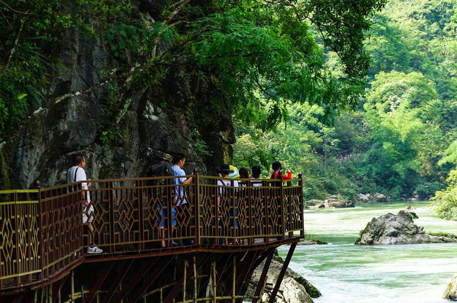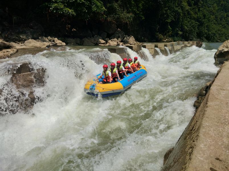 1段:起点漂至中间漂大约5公里长,中间漂是古宾河漂流的重要组成部分,从起点漂到中间漂水流落差较大,有较多的急流险滩,适合喜欢探险的年轻朋友漂流。