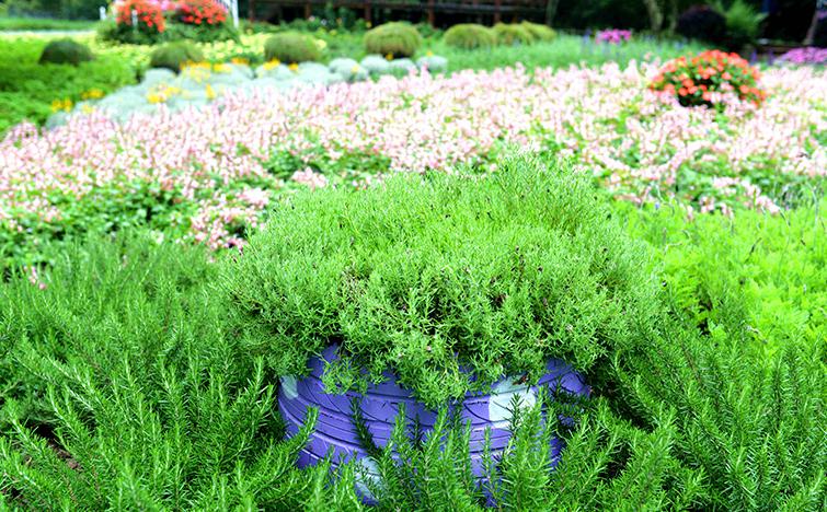 位于绿荫茶室东侧,占地6000余平米,集观花、休闲于一身,设有品种展示区、观景平台、休闲平台、木栈道等。花园中心区域种植了30个品种近500余盆色彩缤纷的八仙花,如“无尽夏”、“梦幻蓝”、“红粉佳人”等,结合白色的欧式拱门和落地盆景等,展现出浪漫的欧式风情。而主入口处古朴的木亭、蜿蜒的旱溪和木质栈台等造景,又凸显八仙花恬静典雅之美。游客步入园中移步异景,从不同角度都能欣赏八仙花的风姿卓绝。