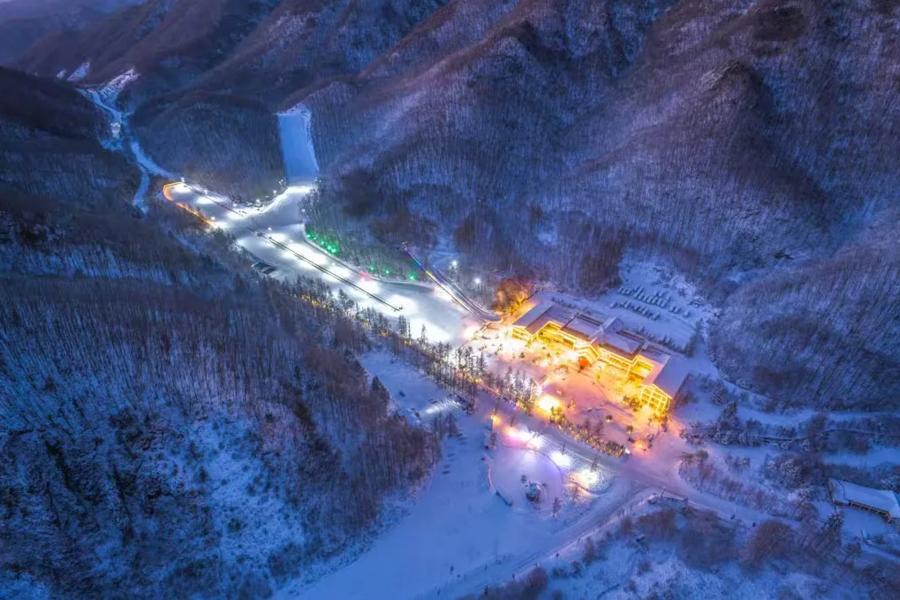 特别是其夜滑项目,面积约18000平方米,设置氛围灯、打卡点等,为游客带来了更加时尚、刺激的滑雪体验。