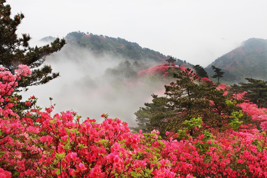 2奇花,“人间四月天,麻城看杜鹃”享誉全国。龟峰山上有连片约10万亩原生态古杜鹃群落,秀美甲天下。