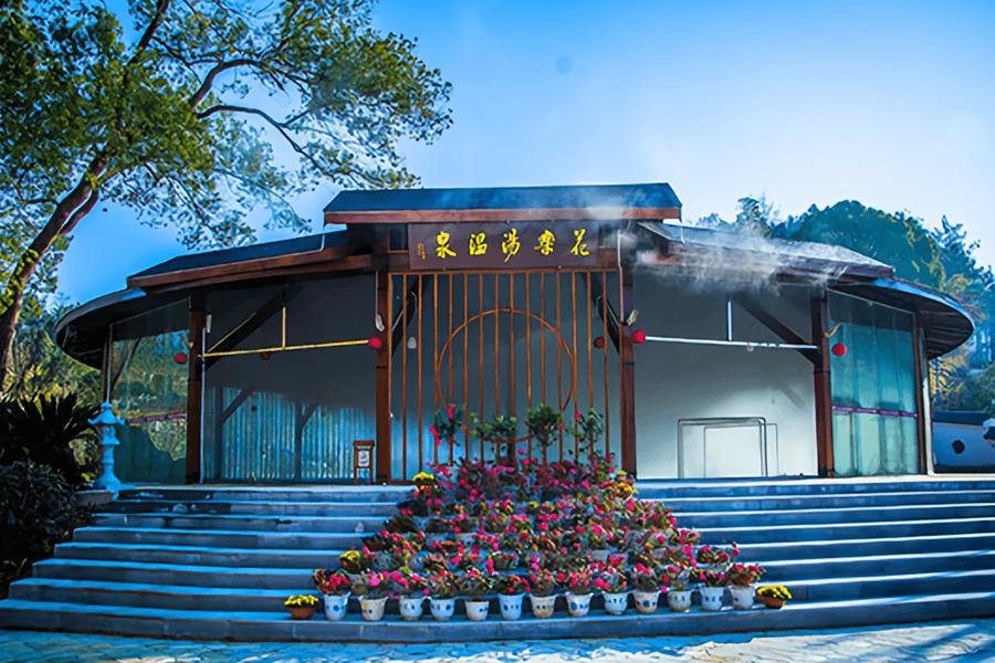 四季花海花乐汤温泉,位于英山县温泉镇四季花海中华情园景区旁。温泉之乡,温泉水源自南汤河,温泉泉口出水温度高达69℃、流量大且分布集中的特点。占地面积30000平方米,池区面积20000平方米。温泉区设有纯天然的温泉泡池多达60多个,所有泡池均隐藏在花草竹林之中,错落有致。