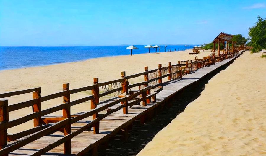 度假区周边分布着许多平畴绿浪的芦苇荡,是水鸟的乐园。芦苇丛间水道纵横交错,绿波如云,水鸟翻飞鸣唱,形成了一幅“草长平湖白鹭飞”的水墨风景画。乘艇游至湖中,北望高山巍峨,冰盔雪甲,南眺沙山起伏,沙水共处,神秘莫测。悠悠碧水, 渔船点点,一派蔚蓝色的柔情。 度假区提供了丰富的水上旅游项目,有游泳、水上冲浪、潜水、沙浴、日光浴、垂钓、划艇、水上降落伞、快艇、摩托艇、淡水洗浴、沙滩足球、沙滩排球、沙滩摩托、水上飞机等。