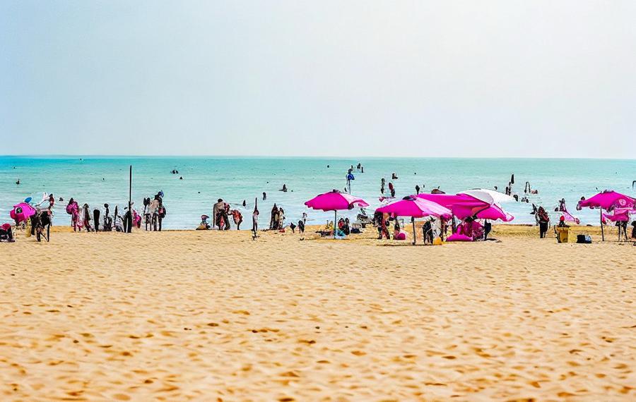是一处得天独厚的湖泊型天然浴场,在遍地干旱戈壁的新疆,这种风光十分少见,因此景区也有“新疆夏威夷”之称。沙粒金黄细绵,色泽晶莹,湖水清澈,与大海之边的沙滩相媲美,同时也有森林绿洲和芦苇荡等湿地风光。