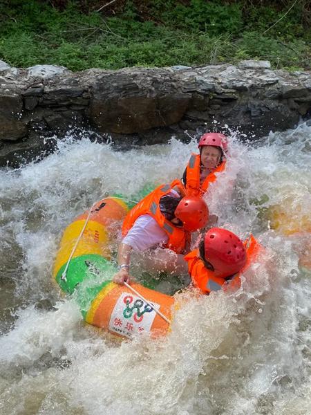 以“情”为主题的漂流,河道全长5.8公里,最高落差为70米,一路上绿树掩映,清凉舒适,橡皮筏像“小型碰碰车”在溪流中不停碰撞,游客可尽享失重、碰撞所带来的惊险刺激,还能饱览沿途美丽风光。