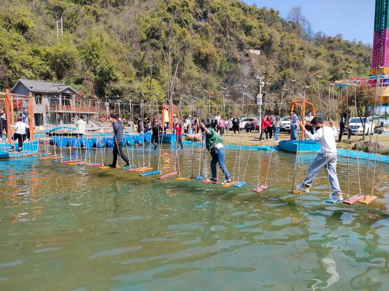 游乐项目悬崖秋千、飞天滑索、彩虹滑道、滑世界、高空挑战桥、魔法转转杯、旋风直升机、丛林穿越、穿越火线、坑爹过山车、儿童溜索、蹦蹦云、儿童穿越、波浪秋千、吼泉等