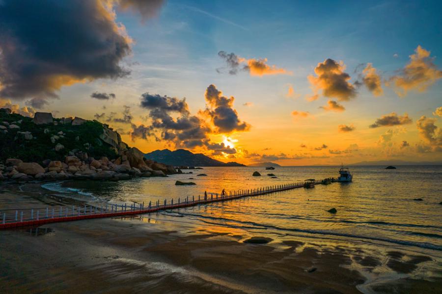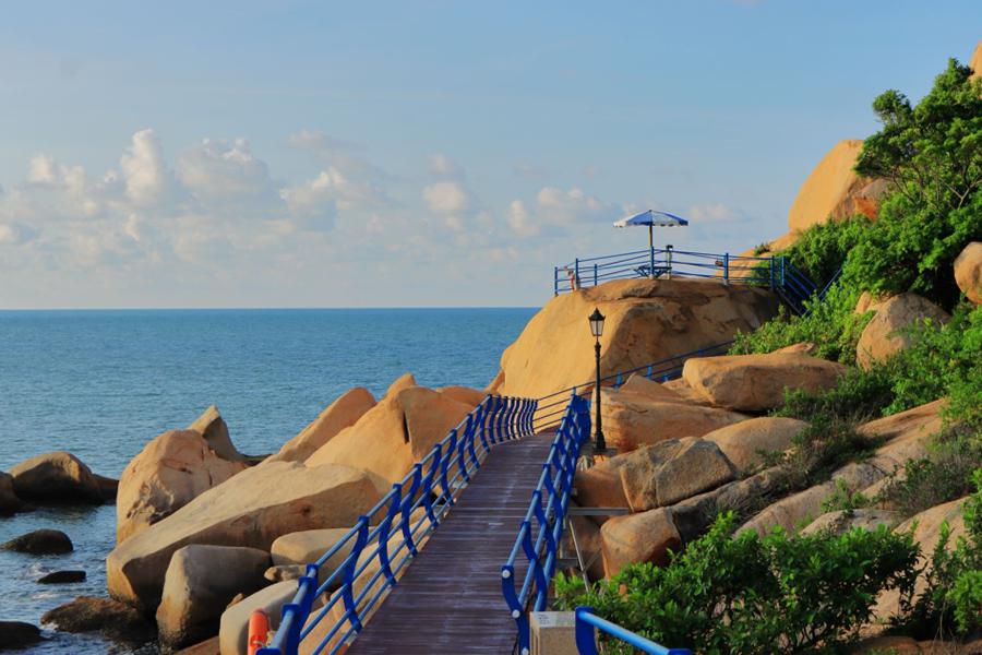 那琴半岛地质海洋公园,地处中华白海豚自然保护区,同时也是古代海上丝绸之路的重要驿站。公园拥有长达6000多米的海岸线,沿岸风光旖旎,海水清澈见底,是观赏海景和进行水上活动的绝佳地点。园内的建筑多为蓝白基调,充满了异域风情,被誉为广东版的“圣托里尼”,是拍照留念的好地方。