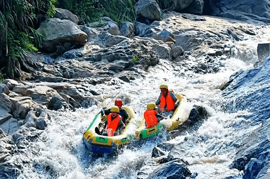 漂流河道曲折蜿蜒,时而平湖深潭,时而激流浅滩,怪石嶙峋的河道让漂流变得更为跌宕起伏,水上过山车,名不虚传。