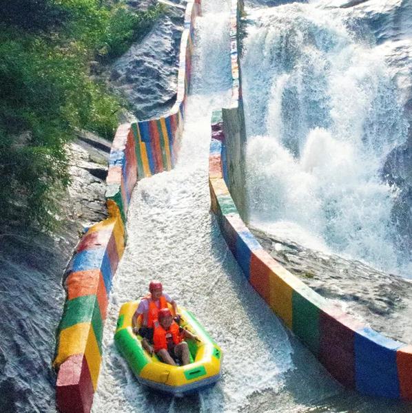 值得一提的是,天景山漂流采用独特的水流调节坝控制水量,无论晴天雨天都可漂。在安全方面则配置有先进的漏水和双向S滑道。