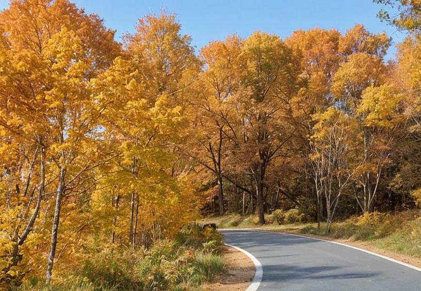 秋天灿烂辉煌,黄叶如染。