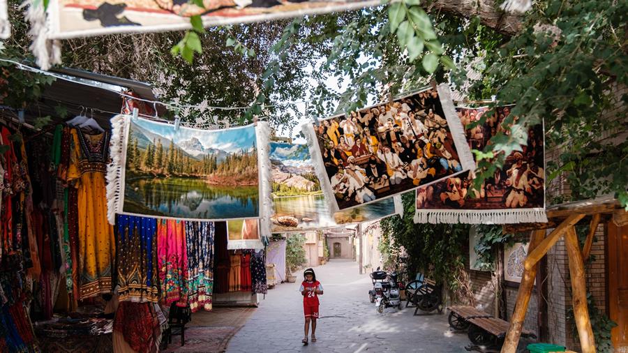 喀什老城是一个保存完好的迷宫式城市街区,展现了维吾尔族独特的建筑艺术和生活方式。这里的街区以伊斯兰文化为特色,拥有20余条纵横交错的街巷,其中包括著名的吾斯塘博依路、艾提尕尔广场、百年老茶馆、坎土曼巴扎(铁匠街)、朵帕巴扎(花帽街)、花盆巴扎、手工艺品巴扎、陶器巴扎等,各有特色,可以沿途观看。街上还有特色风情的茶馆,卖葡萄、馕、羊奶冰淇淋等特色小吃的摊贩,逛街时也可以吃吃逛逛,非常惬意。街巷和建筑不仅具有浓厚的历史和文化底蕴,还充满了浓郁的民族风情,让人仿佛置身于中亚的异域。还有几处重要的景点如老城的艾提尕尔寺,是全国规模较大的寺庙之一。寺内建筑恢宏,每天五次礼拜的场面更是规模盛大,可以见证浓厚的宗教氛围。老城东侧的高台民居是保留下来的古老的城区,泥土房子、跨街楼等都非常独特。而东侧河对面的喀什东巴扎(即喀什中西亚国际贸易市场)则是喀什有名的商场,这里汇集了干果、丝绸制品、精油、英吉沙小刀等众多的新疆特产和手工艺品。