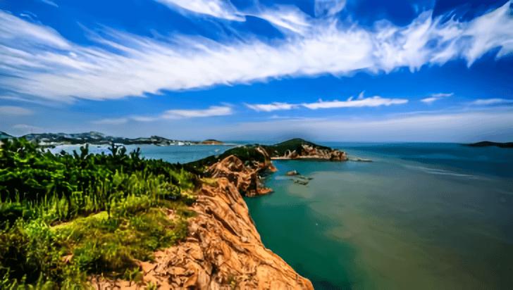 摩天岭生态旅游区,距荣成市区40公里,距威海市区42公里。威海摩天岭还是英雄戚继光大败倭寇的古战场。三面环海,形成了一个独特的小半岛,山海相连,绝佳的自然景观。在亿万年前,大陆漂移的序幕从这里拉开,形成了如今摩天岭独特的地理构造。景观有百花路、官帽厅、太空漫步车、戚继光铜像、水晶宫、栈道等。