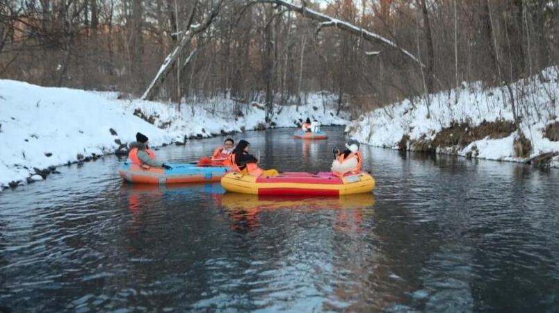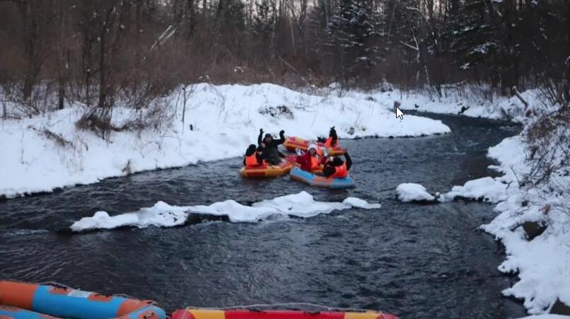那是由多道天然矿泉群汇聚而成的四季恒温永不冻结的碧泉湖,顺流而下是四季漂流圣地,水温常年恒定在6℃-8℃,即便数九寒冬依旧不结冰的碧泉河。每到冬季,河岸两边的雾奇景、经年不冻的矿泉水流、皑皑白雪冬季戏水的游人组成了一副绝美的山水画卷,将寒风凛冽的冬,染成了热“雪”沸腾的冬。体验过冬季漂流,在冰天雪地中与寒冷和激流对抗的每一分钟。