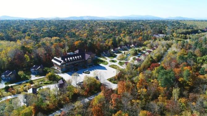 公园内碧泉湖度假村目前由近40座木制欧式森林别墅和12座多功能综合服务楼组成。整个建筑群设计合理、古朴典雅,充分体现人文与自然的和谐。