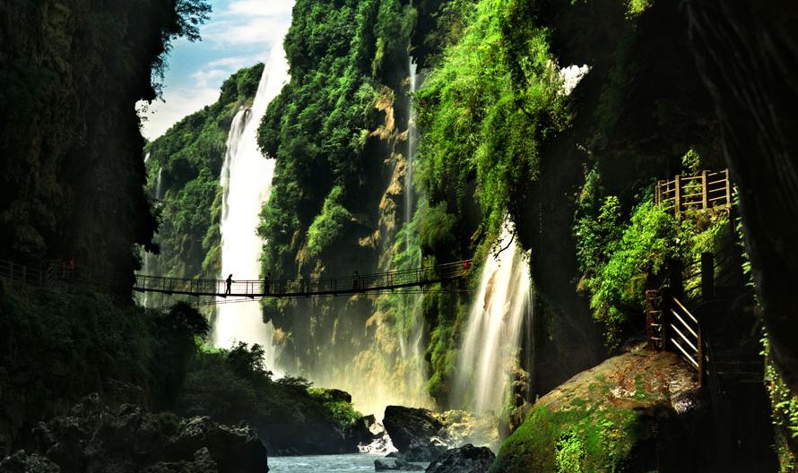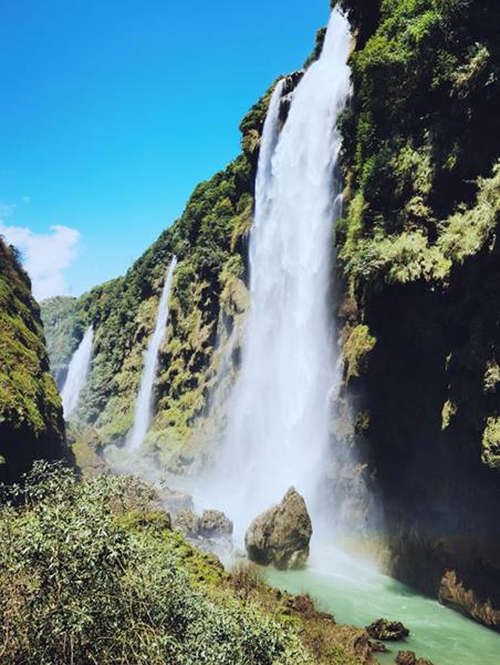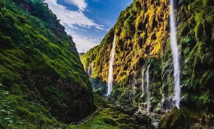一景区有大小瀑布百余条,瀑高120—170米,瀑宽5—100米,壮如银河缺口,柔似袅袅娜娜。