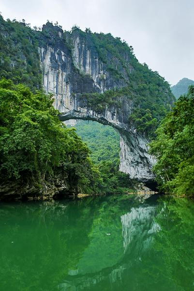大石围天坑形成一个巨大的竖井,地下原始森林面积位居世界第一。罗妹莲花洞洞内大小莲花盆297个,数量及规模堪称世界之最。布柳河仙人桥是一座由三座大山塌陷形成的罕见的天然石拱桥,为世界上最大最美的水上天生桥。