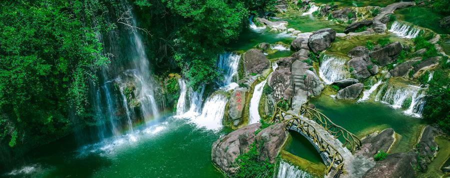 传说光武帝刘秀和妻子阴丽华在此情定终身。形态各异的瀑布群和青如碧玉的美人池,水因氧溶度极高而呈现出一种近乎凝固的蓝色,仿佛人间瑶池一般。