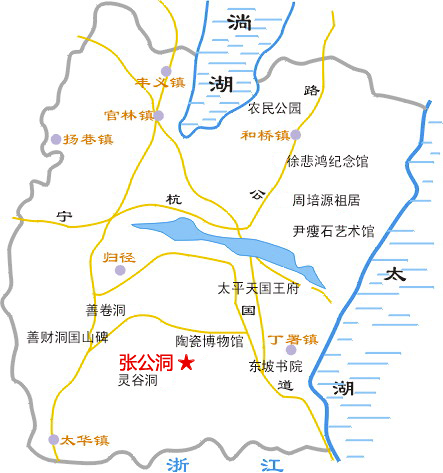 旅游一线(22公里路程,行驶30~40分钟),途经宜兴城,终点站到达张公洞风景区大门。