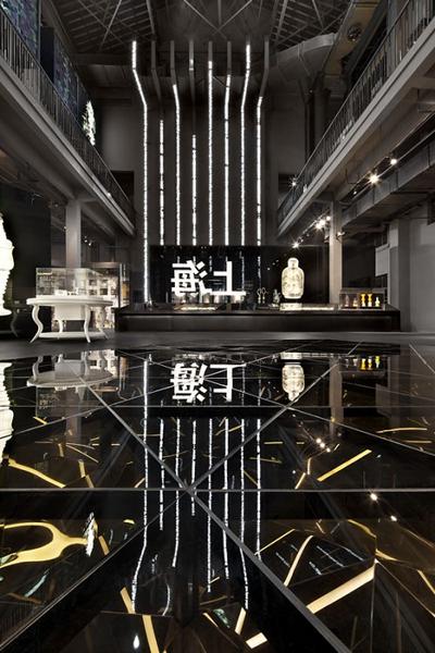 非凡的空间讲述了中西方玻璃的历史,呈现了众多历史长河中遗留的璀璨玻璃。地下展柜黄色的灯带点亮“丝绸之路”,拉近东西方玻璃悠远的历史魅力,参观者可以从中找寻那些丝绸之路所途径的城市印迹, 落地的LED走线灯将近代的上海玻璃工业发展进程深刻地展示在人们面前。