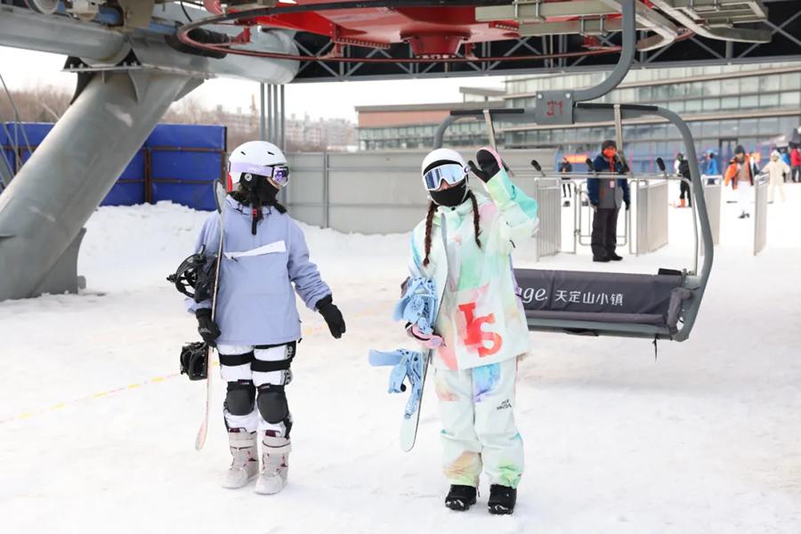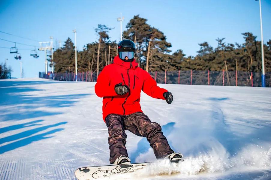 天定山滑雪场拥有18条优质雪道,初级、中级、高级,越野雪道。雪道坡度适中,既能让初学者在安全的环境中逐渐掌握滑雪技巧,也能让高手们感受到风驰电掣的刺激。在这片纯白的世界中,雪场上的滑雪玩家们装备全副武装。
