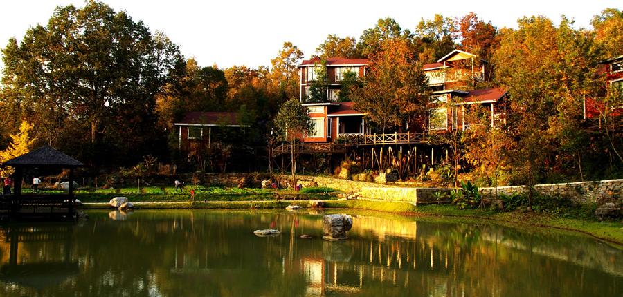 木屋别墅坐落在九路寨生态旅游度假区内,酒店前拥高山小湖,后据秀美群山。七栋别具一格的欧式小木屋依山形错落安放。