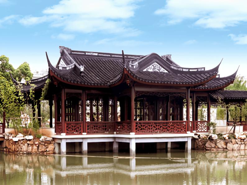 古猗园的亭台楼阁,造型丰富多变,体现了江南园林建筑精巧,散发着古猗园特有的古朴。园内主要建筑逸野堂、梅花厅、春藻堂、翠霭楼、柳带轩等水榭曲廊,造型秀美精致,既是风景点缀,又是观赏风景和遮风避雨休息之处。