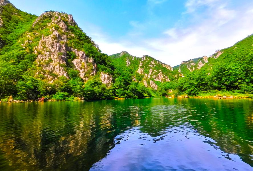 天门峡漂流河道九曲十弯、水质清澈,漂流全长13.6公里,耗时3小时,漂流从起点到终点的自然落差是72米,全程有12处激流点,有三分之一的河段落差大,水流急,弯道多,非常具有挑战性。漂流起点双龙汇途经黑石礁、天门谷、鸽子洞、转兴湖、神龟湾、喜鹊汀、蜂蜜砬、老龙头、幸福桥、鲤鱼汀、尾点凤凰湖,寓意龙凤呈祥。欣赏两岸美景的同时,体验刺激与激情。