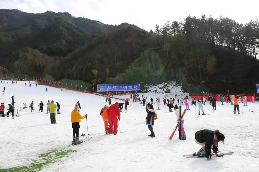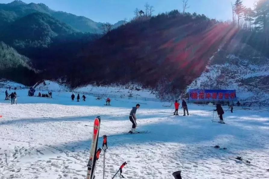 黄冈桃花冲滑雪场是鄂东地区规模最大的高山滑雪场,滑雪道依照山势自然分布,呈弧形,跌宕起伏,极富挑战力。建有滑雪练习道、初级滑道、中级滑道、挑战山顶滑道、彩虹滑道等。滑雪小白还是运动高手一展身手的机会。