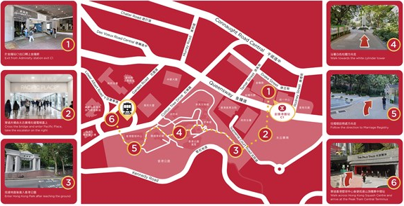 前往山顶的山顶缆车总站位于:香港中环花园道 33号