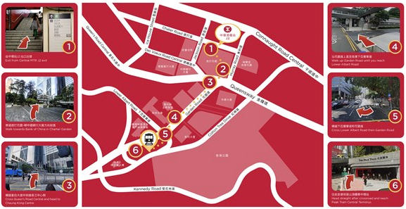 乘搭巴士、小巴或山顶缆车前往,只需约15分钟便可由中环前往山顶