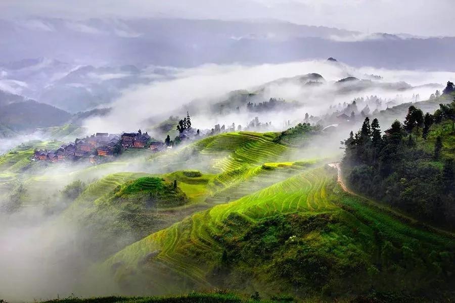 龙脊梯田,距县城22公里,距桂林市80公里。历史悠久梯田始建于秦朝,成形于唐朝,完工于明朝,距今已有2300多年的历史,是广西二十个一级景点之一。梯田处处有,可像龙脊梯田这样大规模的集中实属罕见。垂直高度达五六里,横向伸延五六里。