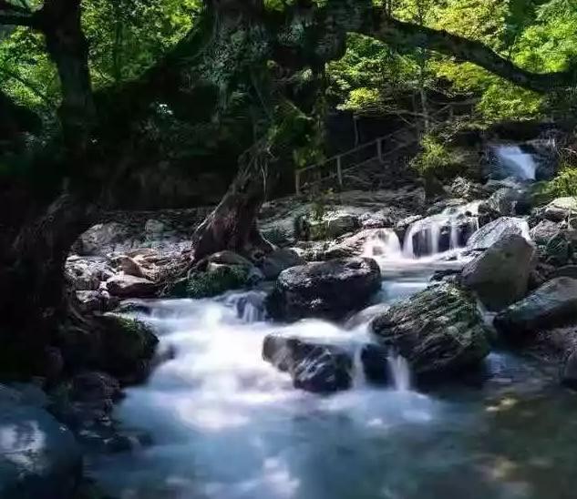 九天仙寓景区,仙寓山是一条山脉,横跨池州的东至县和石台县,在东至县的这一部分所构成的景区被称为九天仙寓。距县城40余公里,海拔高达1376米,植被繁茂,负氧离子含量极高,是不可多得的“天然氧吧”。景区内千峰竞秀,古木参天,奇石千姿百态,以看水景为主。以皖南最大的瀑布群而著称,拥有数个相迭的多迭瀑布和高达百米的单迭瀑布。水流四季不断,尤其在冬季,这里会出现外冰内水的冰瀑奇观,为游客带来别样的视觉享受。