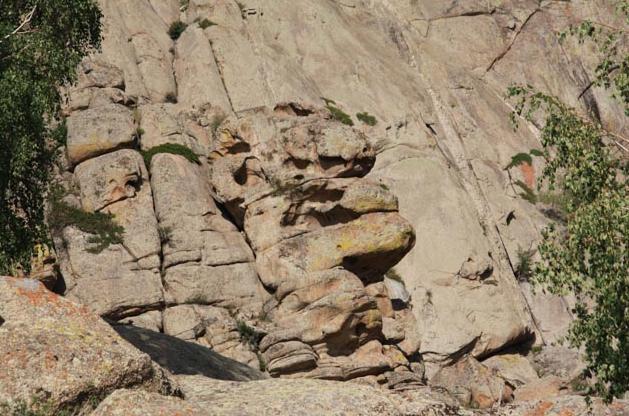 海拔1446米,岩块下宽上窄,下部宽40米,上部宽20米,高40米,从上至下共分为七层,形似哈萨克族食用的馕饼,形象逼真的象形山石。
