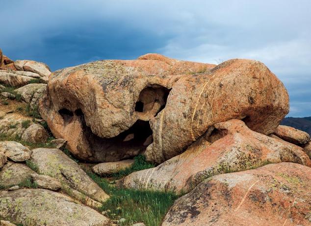 海拔1208米,岩石呈低矮状成片分布,面积约为0.2平方千米。个体棱角分明,形态各异,极具观赏价值。它是华力西中期的灰色中粒花岗岩,因其所含矿物的抗风化能力存在较大差异而形成的象形山石群,属于花岗岩地貌。在此还可远观伊雷木湖全景和湖滨田园风光。