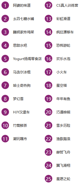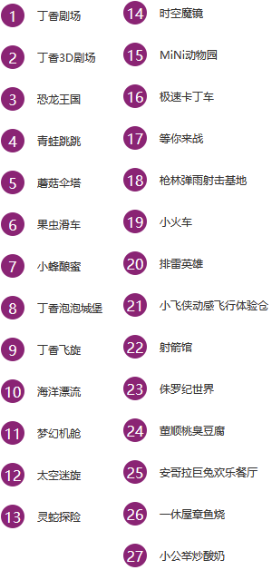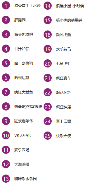 融创乐园 巧妙地将地域文化和传奇故事与欢乐刺激的主题乐园元素融合在一起,乐园由哈市大街、兴安雪原、乌苏里渔歌、丁香仙境、欢庆时光五大主题区域组成,每个区域都拥有各自独特的主题和特色。20余项大型游乐设施。
