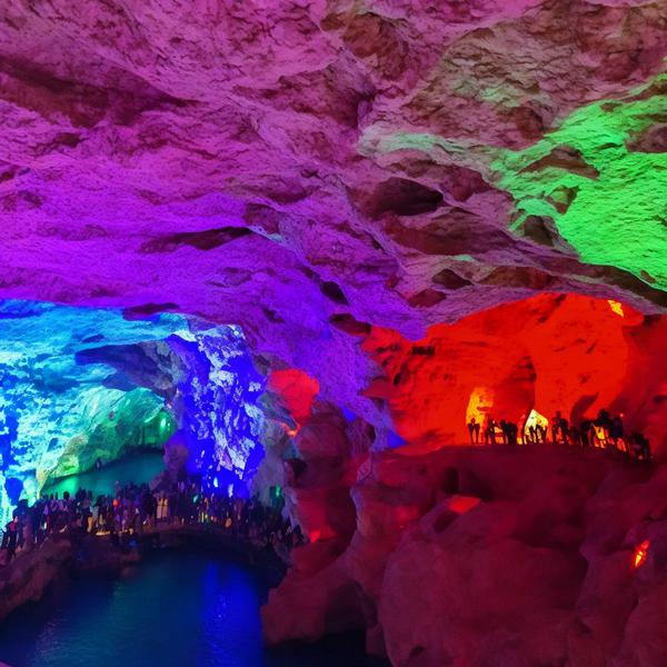 拥有丰富的自然和人文景观,是一个集山水、洞穴、水上汀步、神兽广场、图腾神柱、神龙瀑布等景点组成,洞内包含远古藤蔓、萤火星空、五谷丰登、后羿射日、扶桑神树、海底世界、精卫填海、女娲造人、百鸟朝凤、5D穹顶光影秀等多处景点。所有景点,动静结合,处处奇特,个个震撼,乘船入洞宛如人在画中游,旱路游览犹如置身天然大剧院。