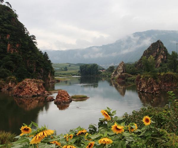 春夏:砬子上褐色巨石被争芳斗艳的映山红、山玫瑰等千姿百态的山花掩映,其状就更象一个硕大的鸡冠了。