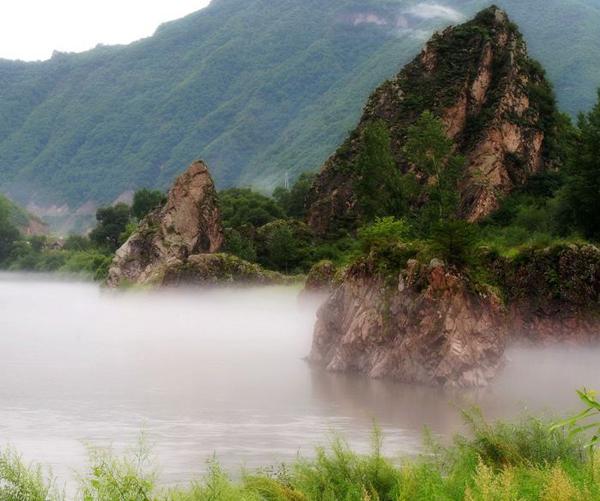 鸡冠秀峰形如一只巨大的鸡冠,清澈的鸭绿江水在山峦间蜿蜒流过。鸭绿江水由东向西,折而向南,续而向西擦鸡冠砬子而过,远眺极象一雄鸡饮水。其山体倒映水中,山水一色,宛若仙境,故有“长白小桂林”的美誉。